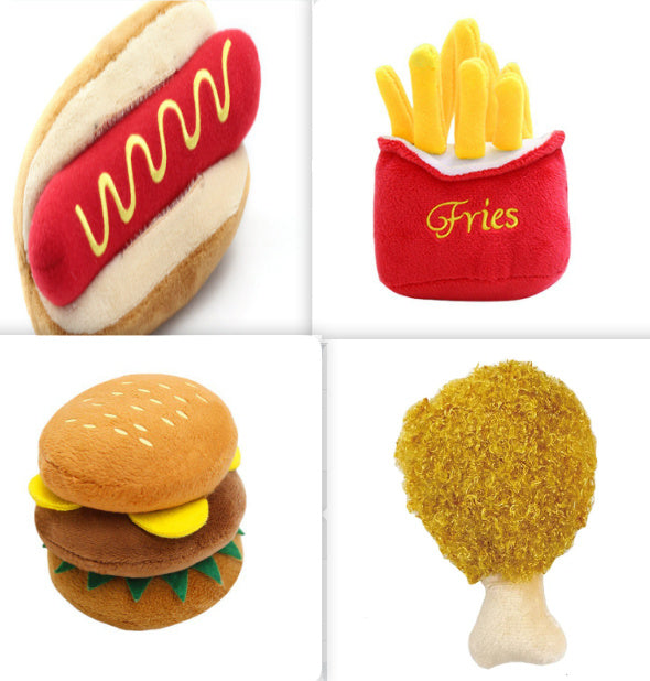 Product category: gnawing toys Shape: food, French fries, hamburger, chicken leg toy Participants: pet products, pet cat products